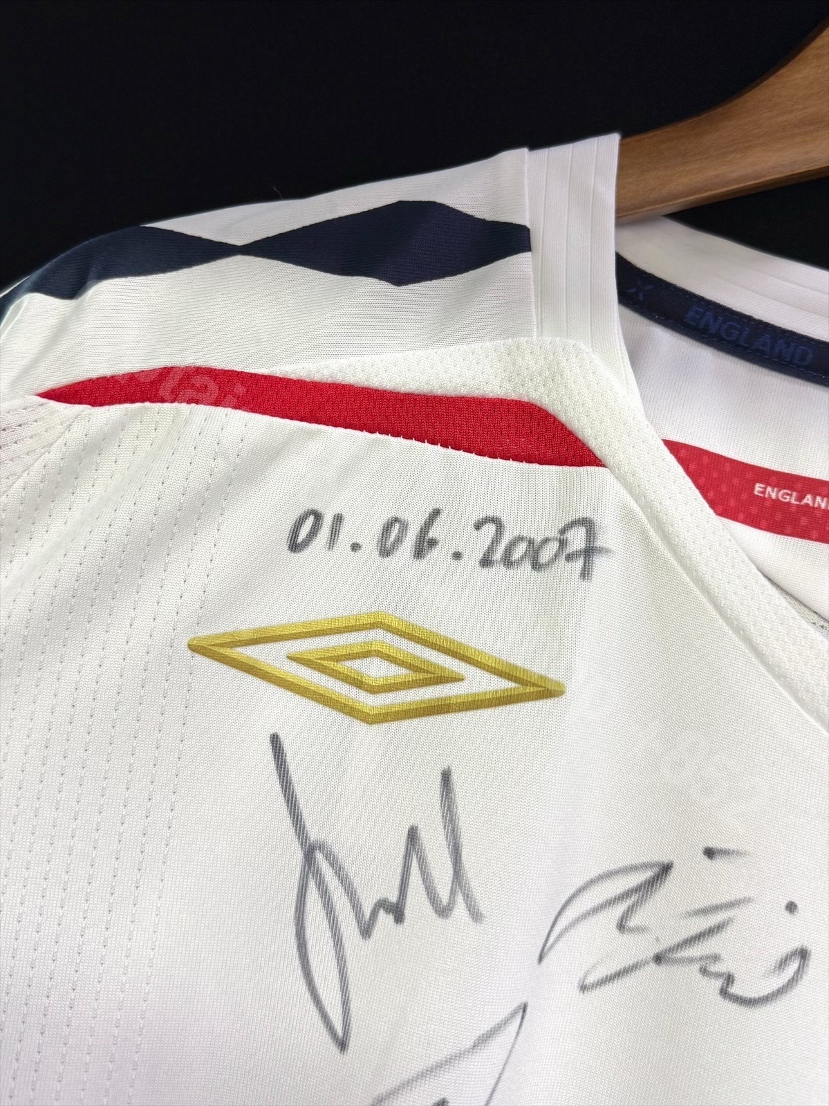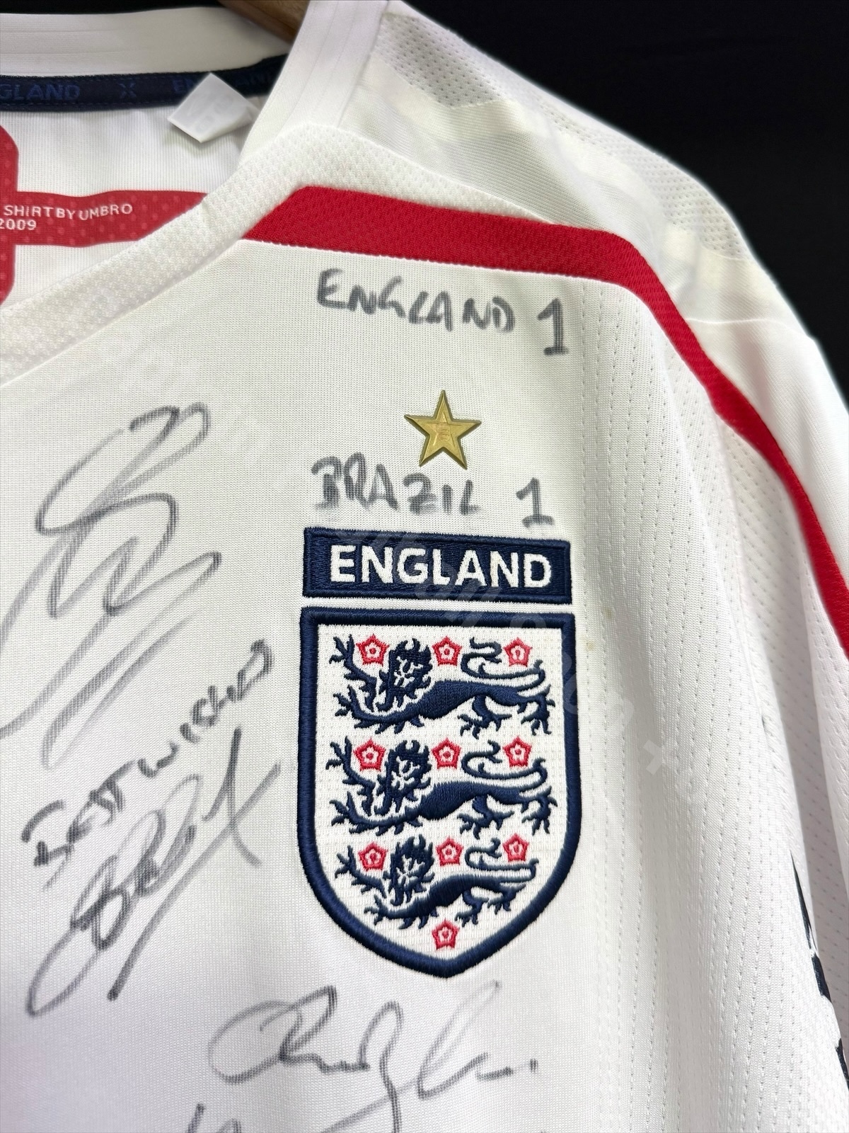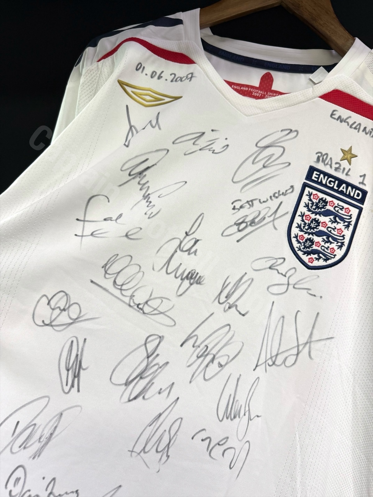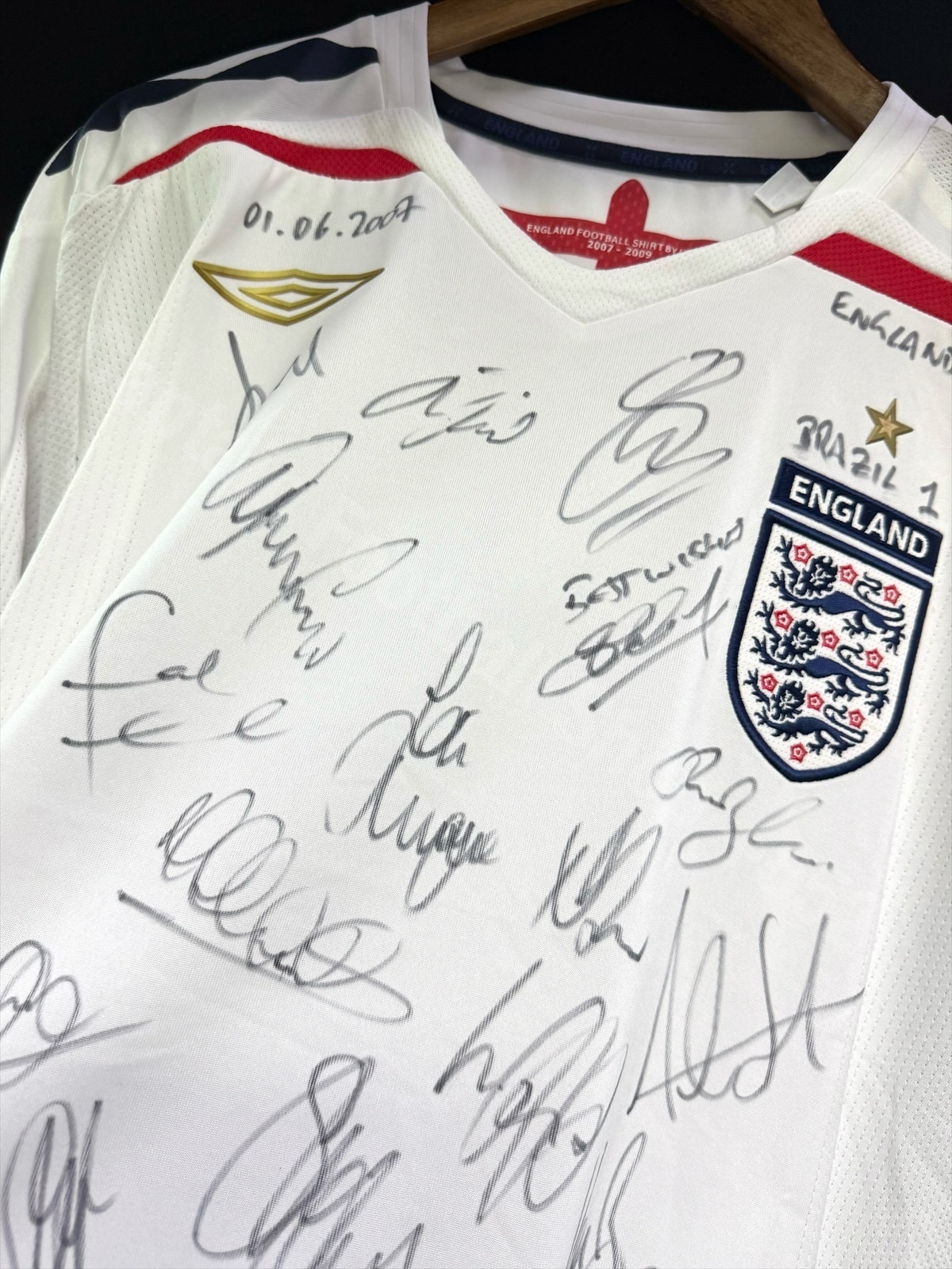 (Both Squad Signed) England 2007 Umbro Home Shirt vs Brazil